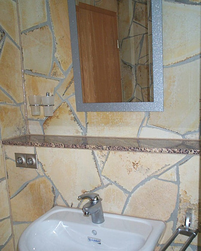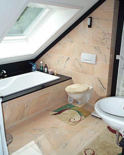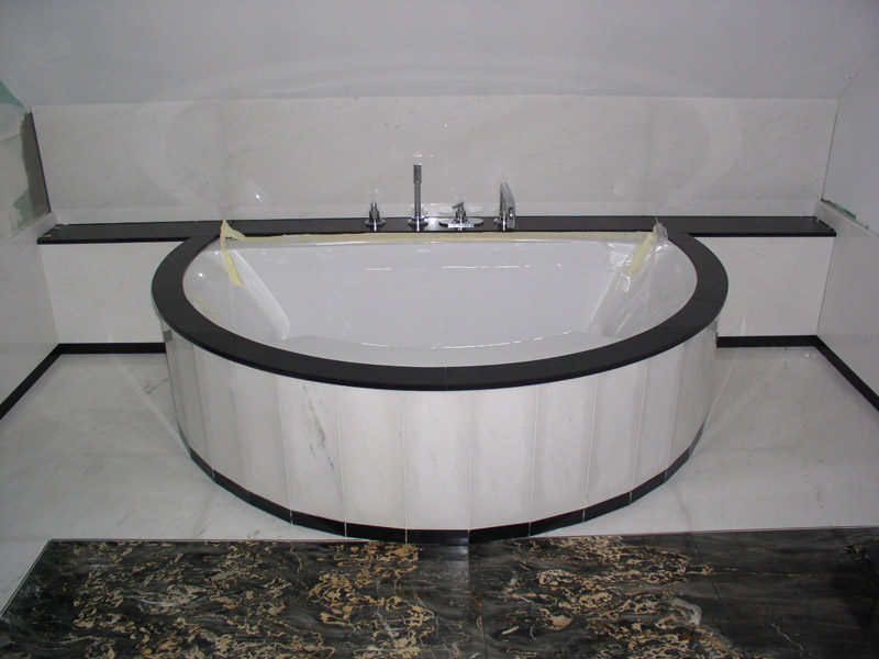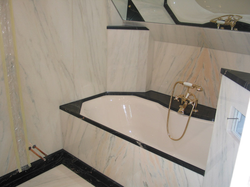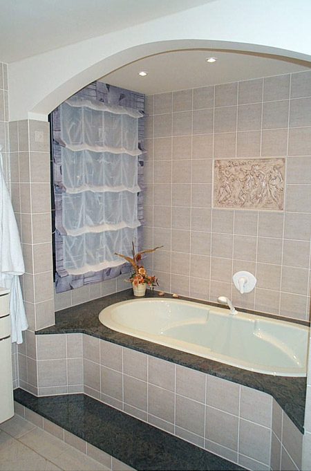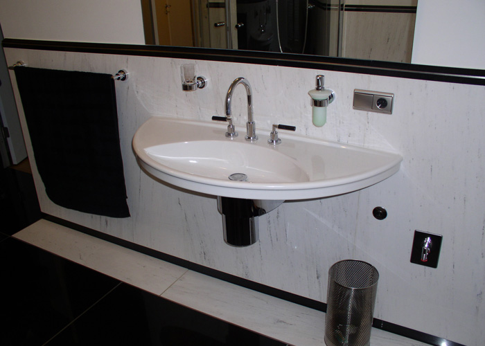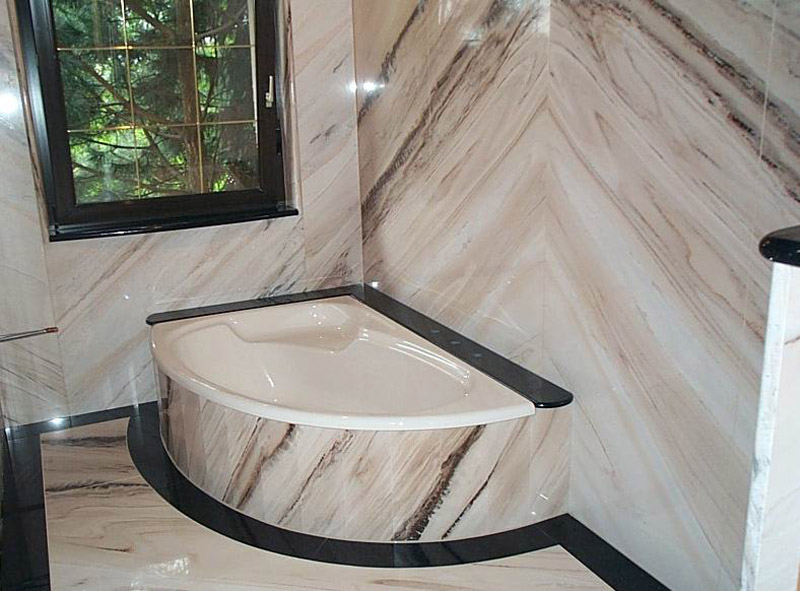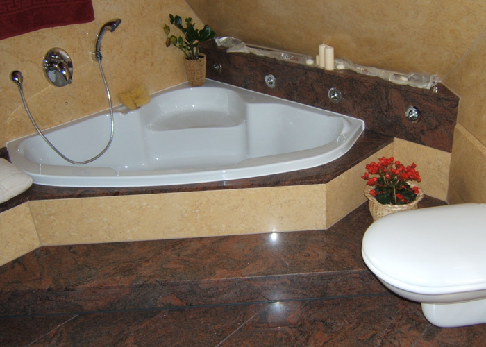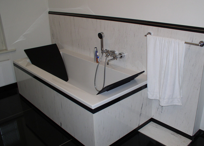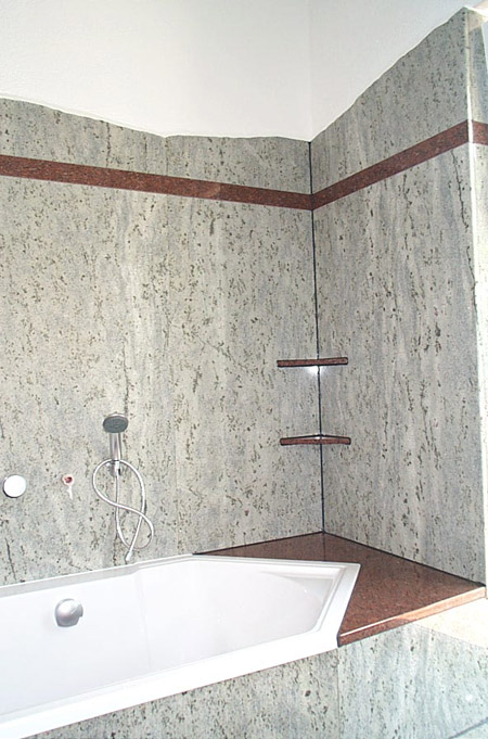 Verkleidungen für Rückwände, Vorwand oder Wannenumrandungen gehören ebenfalls wie Boden und Wandverkleidungen dazu. Der Trend der komplett gefliesten Bädern ist jedoch stark rückläufig. Meist werden mit Naturstein nur noch Akzente gesetzt welcher als gestalterisches Element stilvoll eingesetzt wird.