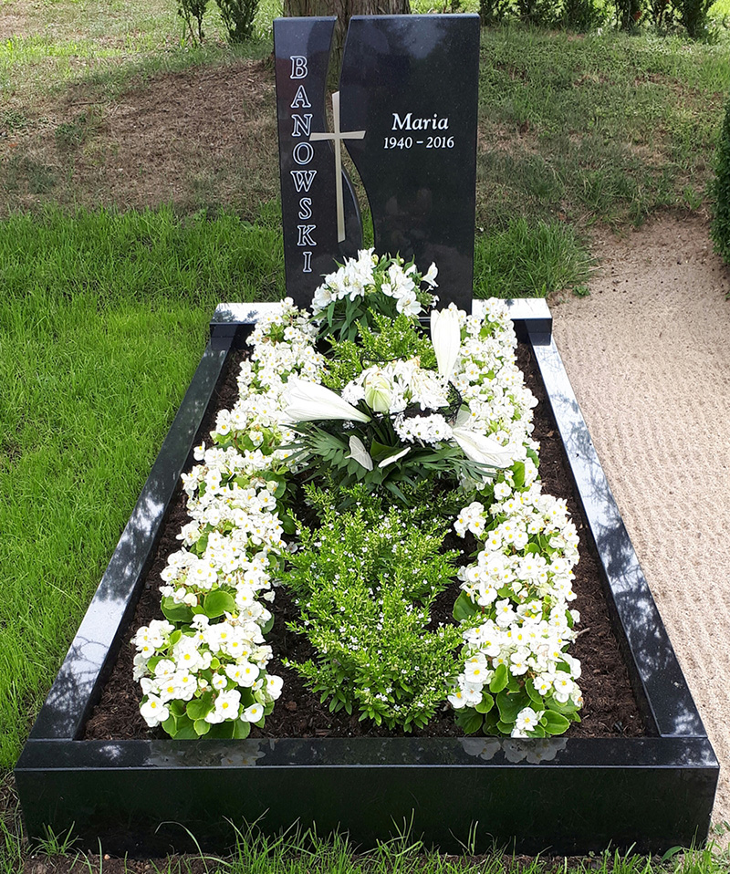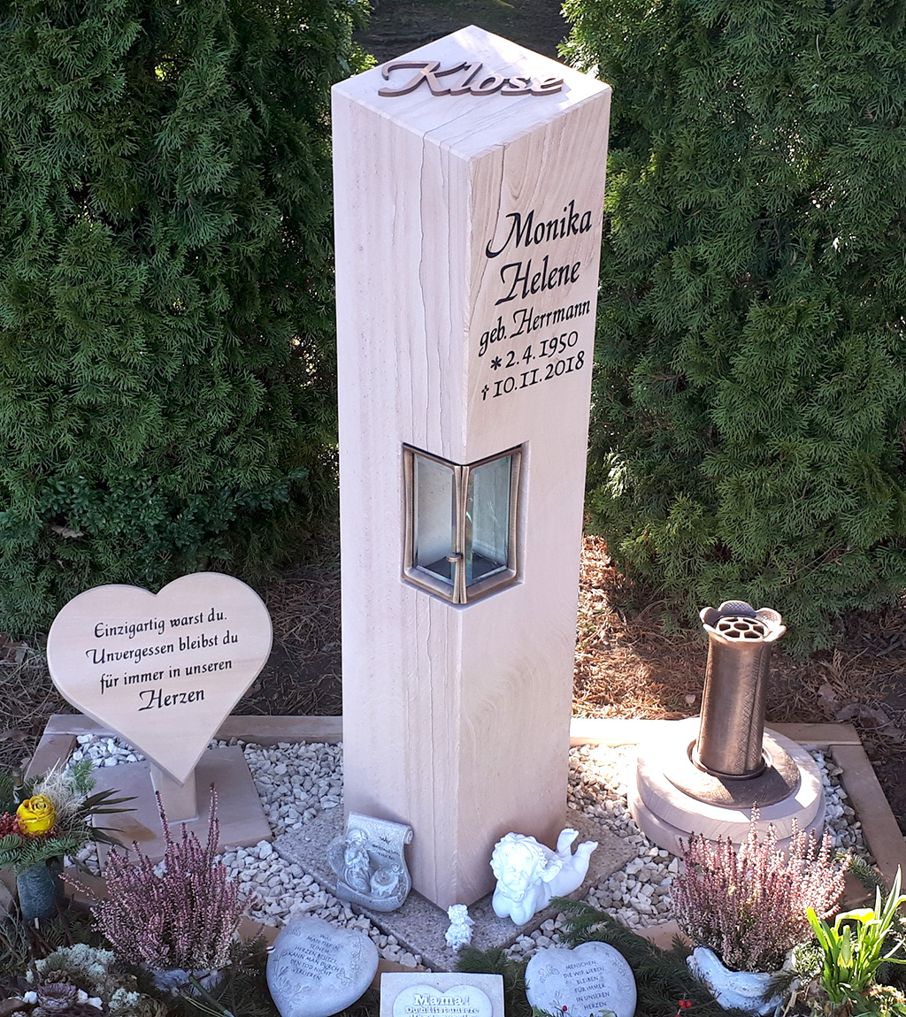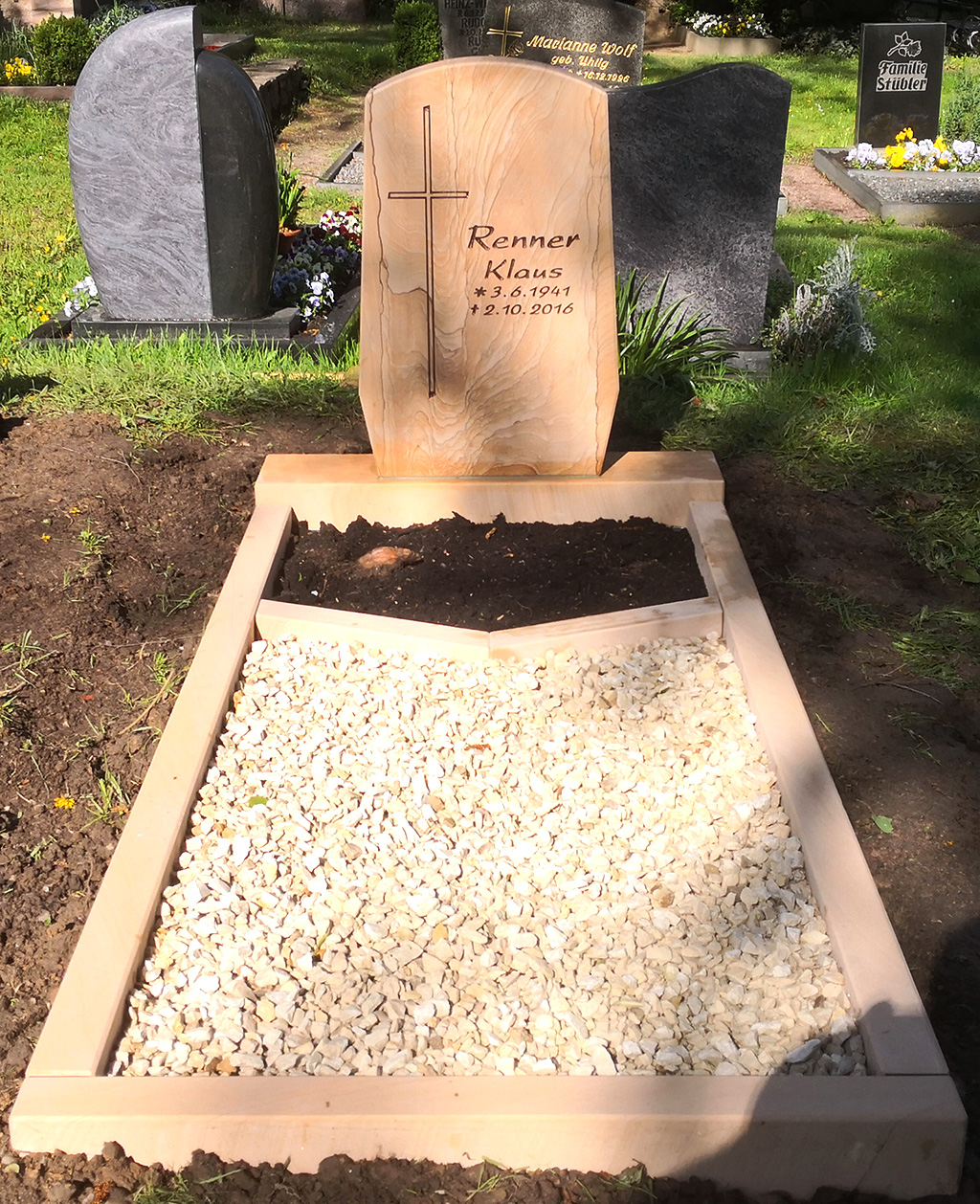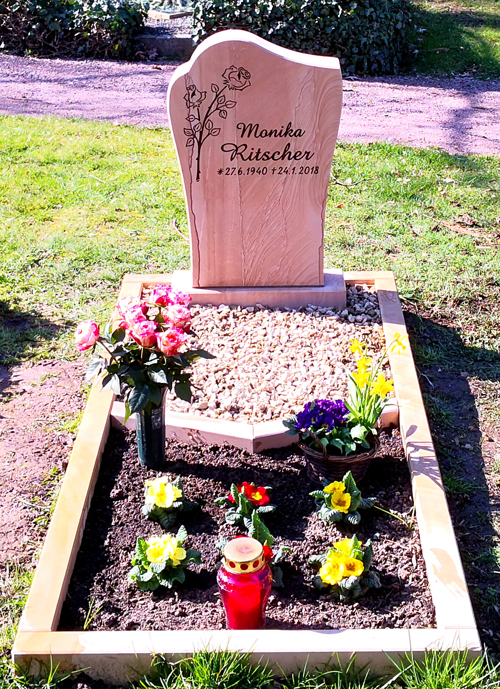 Gedenksteine für Einzelgrabstellen sind auf Grund der Erdbestattungen in Ihren Abmessungen größer. Die durchschnittlichen Steingrößen belaufen sich auf ca. 70-100cm Höhe und ca. 45-55 cm Breite. Einfassungen sind Bezug nehmend auf die jeweiligen Friedhofsordnungen vielerorts erlaubt.
