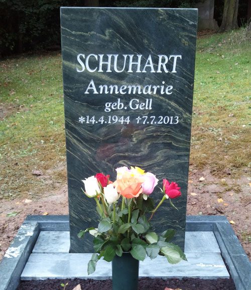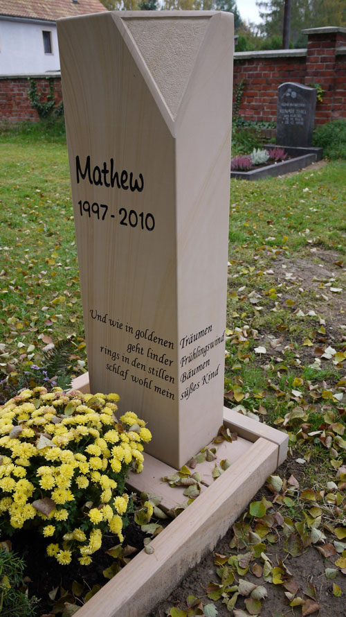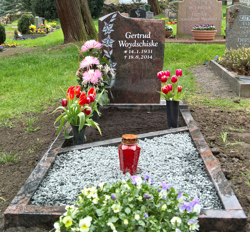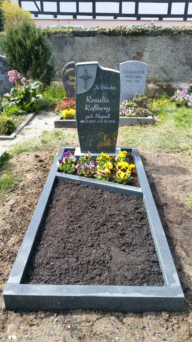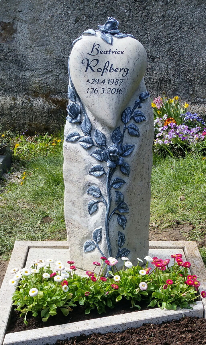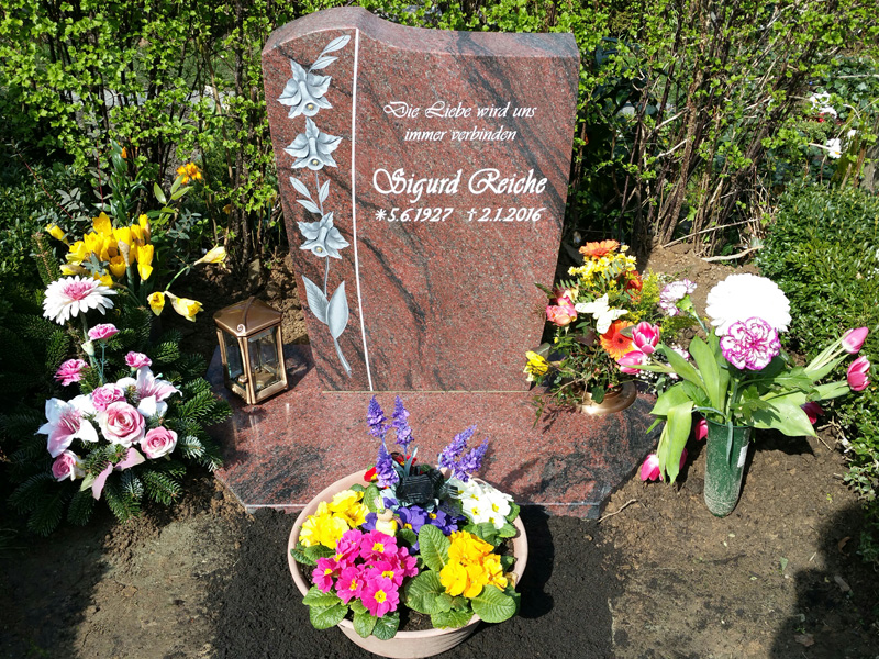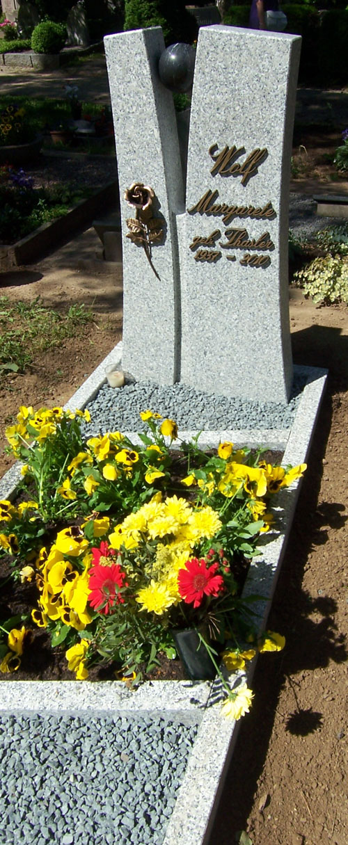 Gedenksteine für Einzelgrabstellen sind auf Grund der Erdbestattungen in Ihren Abmessungen größer. Die durchschnittlichen Steingrößen belaufen sich auf ca. 70-100cm Höhe und ca. 45-55 cm Breite. Einfassungen sind Bezug nehmend auf die jeweiligen Friedhofsordnungen vielerorts erlaubt.