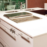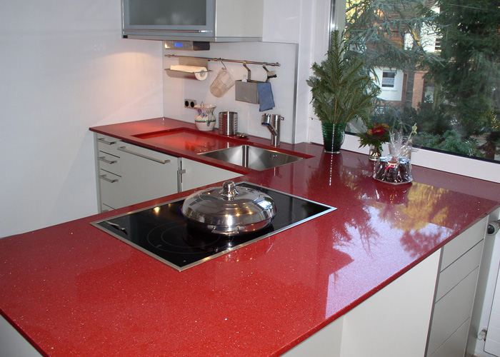 Durch die außergewöhnliche Farb- und Strukturvielfalt der verschiedensten Hersteller, wie z.B. Silestone, Compacstone, Technistone o.ä. können Sie aus einem riesigen Repertoir Ihre Arbeitsplatte auswählen. Die Platten können teilweise in 1,2cm, 2cm sowie 3cm Stärke gefertigt werden, auch hier besteht die Möglichkeit durch verschiedene Kantenvarianten eine bis zu 12cm starke Optik zu erreichen.