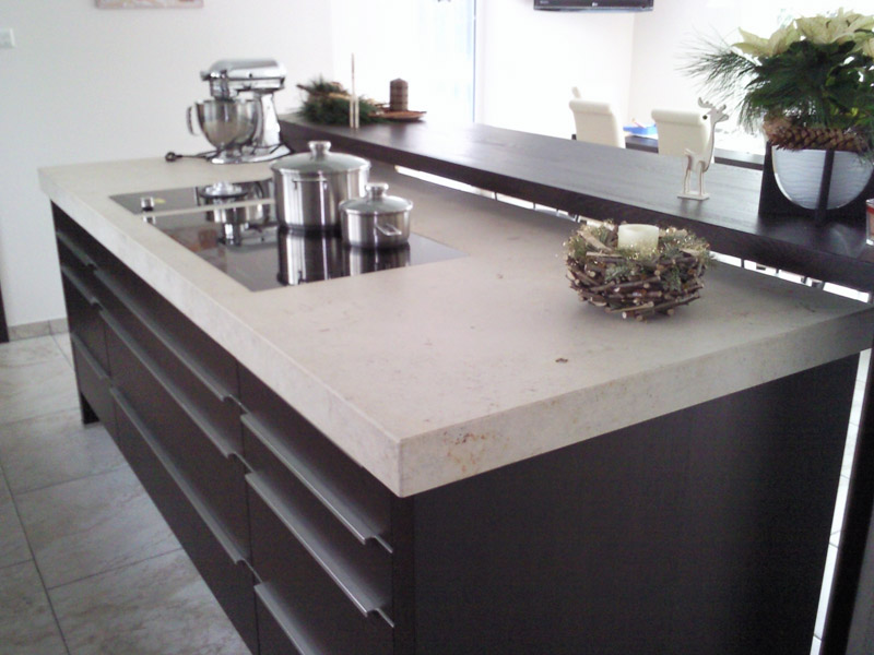 Naturstein macht Ihre Küche zum Unikat. Nicht nur die Maserungs- und Farbvielfalten dürften eine Entscheidung für den Naturstein sein.. Jedoch ist nicht jeder Naturstein gleichermaßen als Arbeitsplatte geeignet. Bestimmte Gesteinssorten, z.B. Marmor, Sandstein, Schiefer etc. werden im Laufe der Zeit „altern“, und durch Ihre Nutzung Gebrauchspuren erhalten. Jedoch ist jede Macke, jeder Fleck ein Beleg dafür, dass die Natur keine unfehlbaren Produkte produzieren kann.