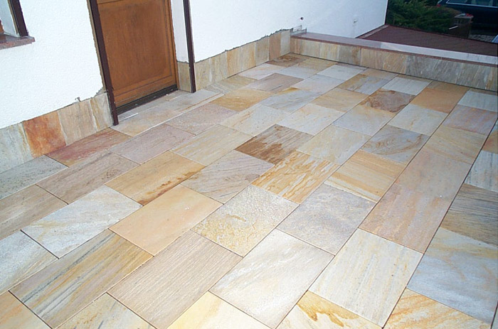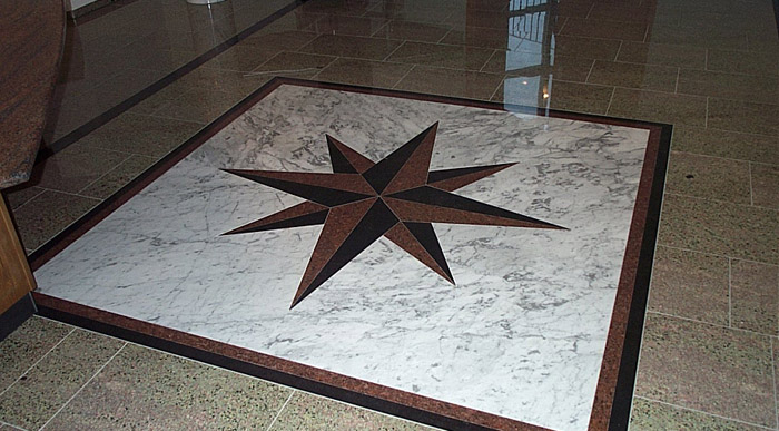 In den verschiedensten Ausführungen sind von der Fliese bis hin zu großformatigen spiegelbildlichen Steinplatten möglich. Ebenfalls können Intarsien wie z.B. Windrosen oder Friese eingearbeitet werden.