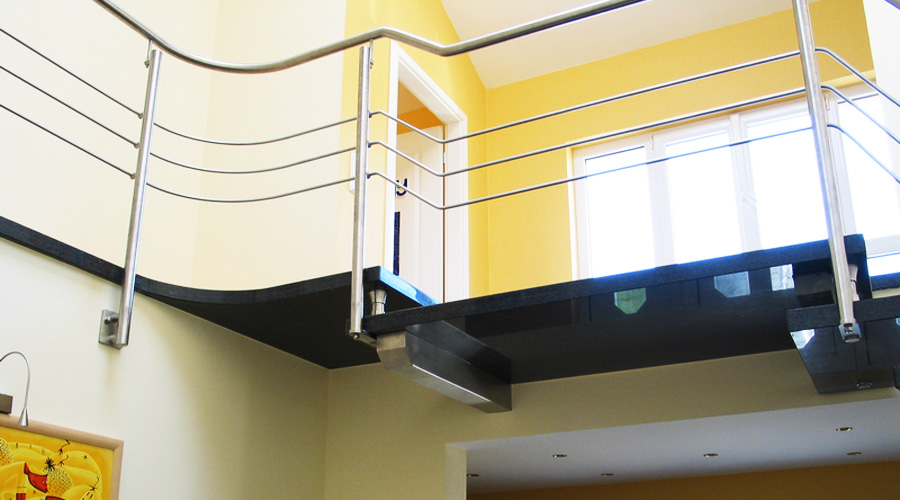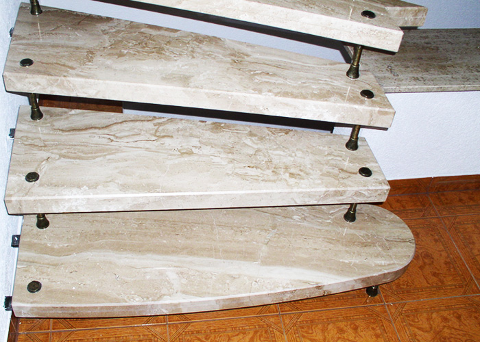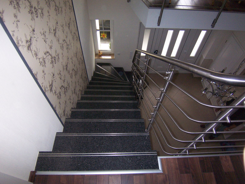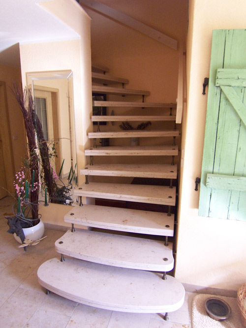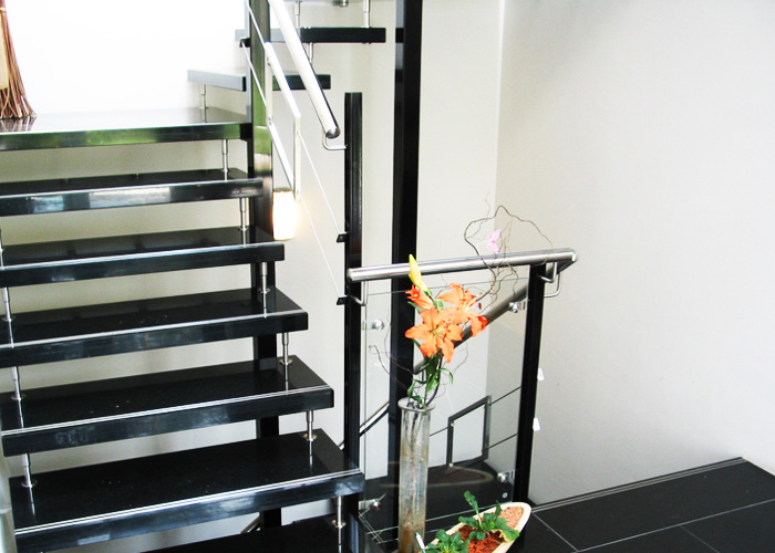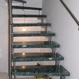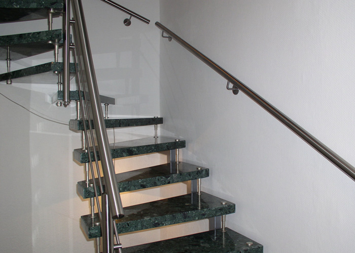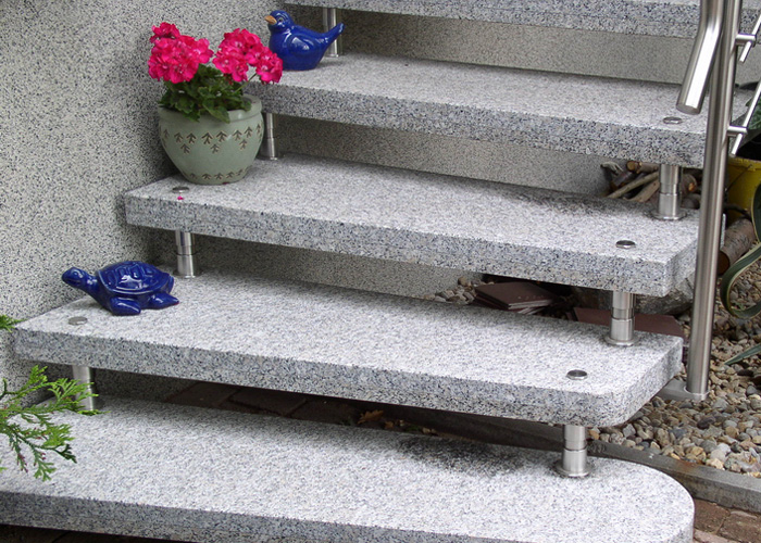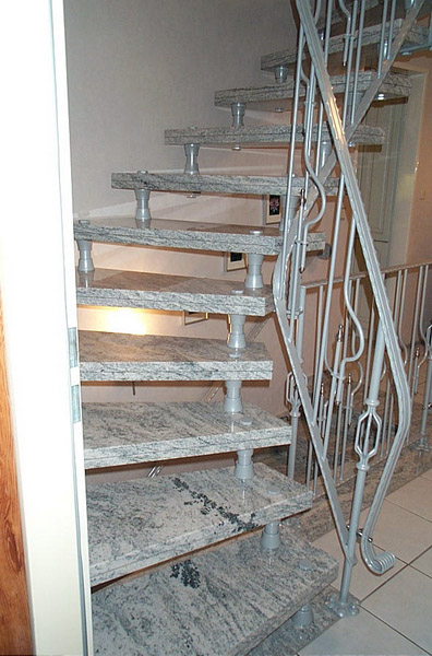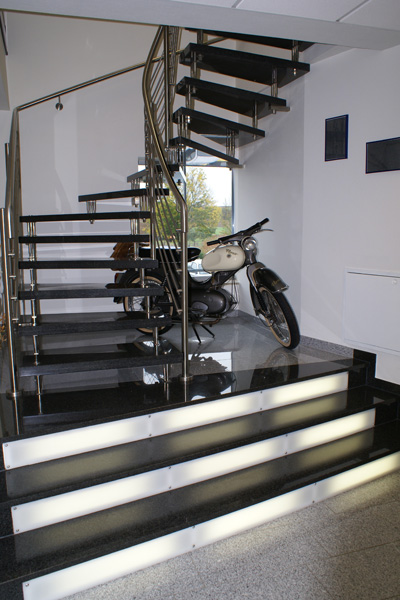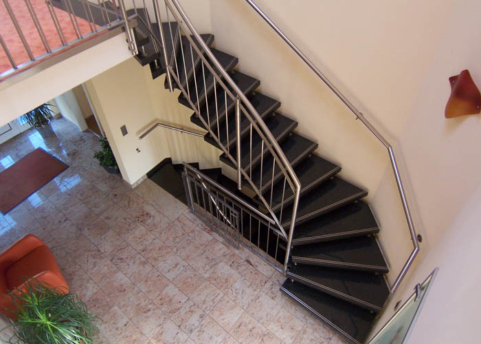 Diese Treppenvariante ist meist von allen Seiten sichtbar und kann durch Ihre „luftige“ Bauweise als gestalterischer Blickpunkt verwendet werden. Die Statik wird durch die Natursteinplatten selbst erbracht. In der Regel werden zwei 3cm starke Platten und eine Armierungsmatte miteinander verklebt.